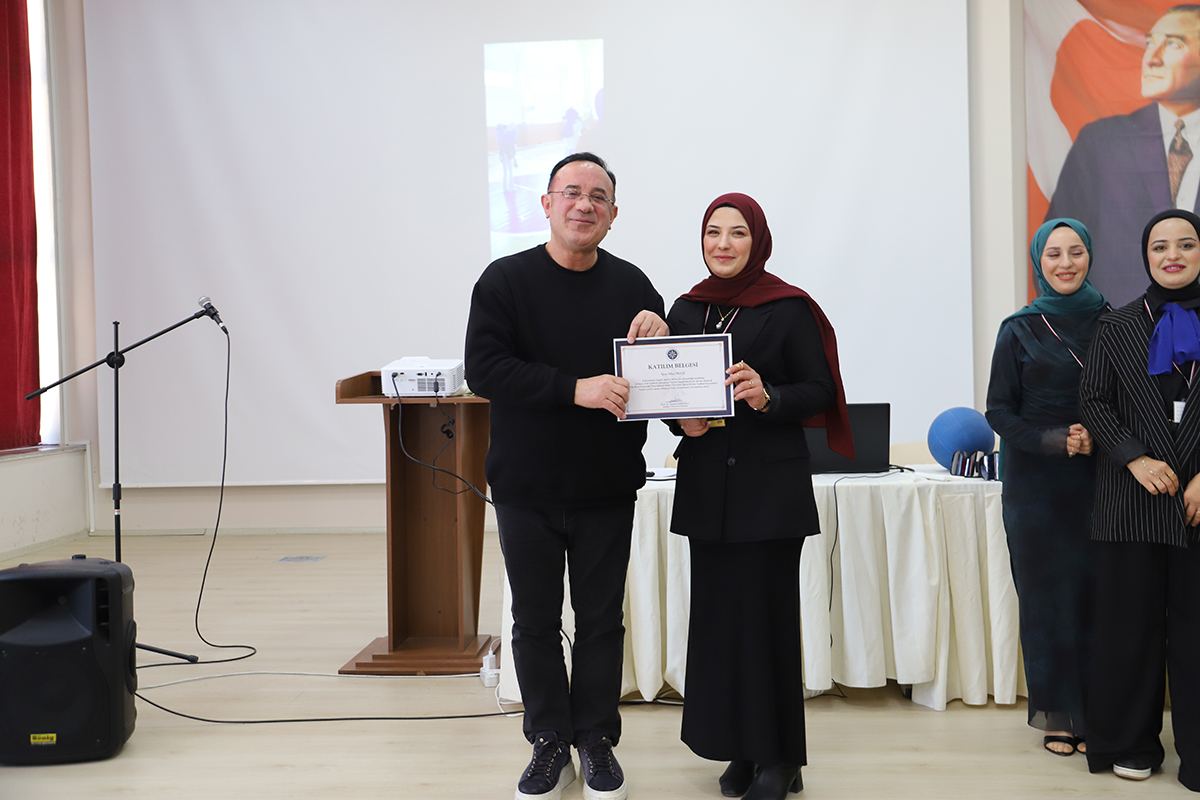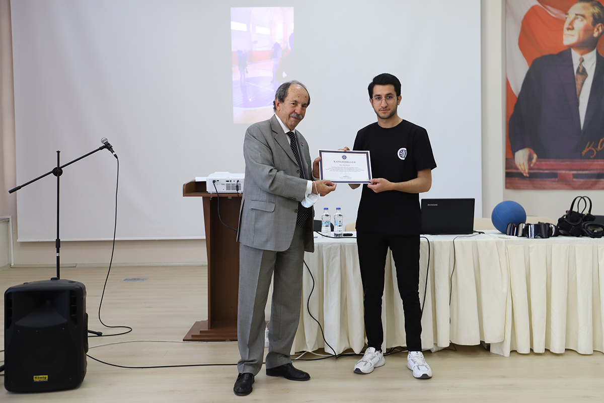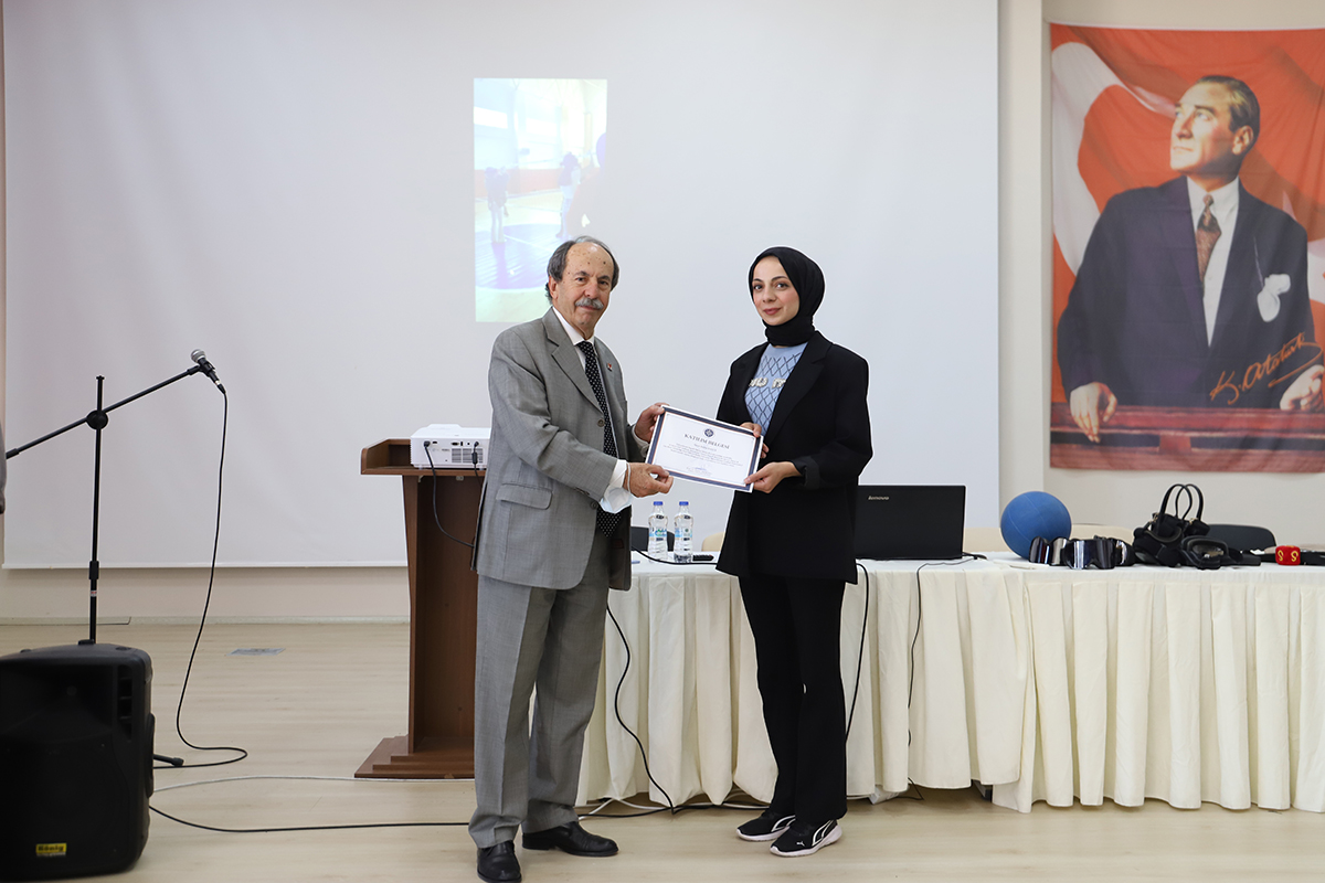 10-16 Mayıs Engelliler Haftası dolayısıyla Üniversitemiz Engelli Öğrenci Birim Sorumlusu Öğr. Gör. Betül Aşcı’nın koordinatörlüğünde Spor Bilimleri Fakültesi Beden Eğitimi ve Spor Öğretmenliği Bölümü 4.sınıf öğrencileri ile Sağlık Hizmetleri Meslek Yüksekokulu Çocuk Gelişimi Programı 1. Sınıf öğrencileri tarafından “Görme Engelli Bireylerde Sporun Önemi ve Gün Boyu Görmezliği Deneyimleyen Kız Öğrencilerin Goalball Deneyimi” isimli bir söyleşi düzenlendi. Söyleşi sonunda Üniversitemiz goalball takımı goalball malzemelerini tanıttı. Söyleşiye Sağlık Bilimleri Fakültesi Dekanı Prof. Dr. Mehmet Özkan, İnsani Bilimler fakültesi Dekan Yardımcısı Dr. Nurgül Bağcı, Çocuk Gelişimi Programı Bölüm Başkanı Dr. Tevfik Fikret Karahan ve çok sayıda öğrenci katılım sağladı. Program sonunda Prof. Dr. Mehmet Özkan ve Tevfik Fikret Karahan tarafından öğrencilere katılım belgeleri takdim edildi.